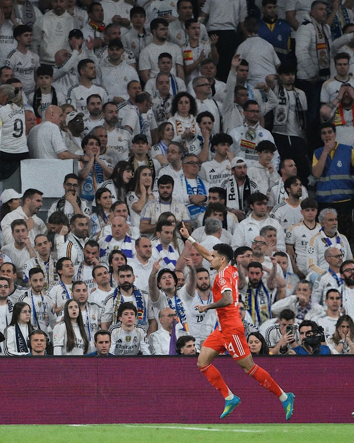 The Red in a sea of White. Luis Diaz strikes first at the Bernabeu 💣 // 📸#欧冠联赛#